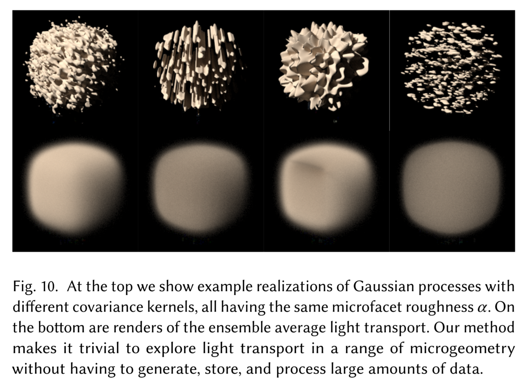 Their novelty is mainly in developing an efficient rendering algorithm for a new type of scene representations. While this efficient algorithm is lathered with technical details, the background of their work is interesting: bringing stochasticity into scene geometry to unify all representations into one, which traditionally has a collection of specialized models to render certain geometries (usually surfaces and participating media). This new generalization naturally gives us geometries that are in between the participating media and surfaces known as “mesoscale” geometries. I hope this allows us to additionally model certain appearances in the physical world that would otherwise be difficult (i.e., larger parameter space that fits closer to physically-correct models).